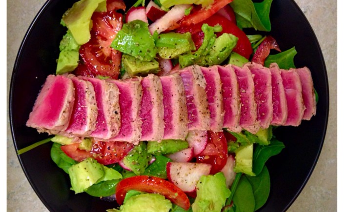 All you need is a tuna steak, seasoning, and a little salad.