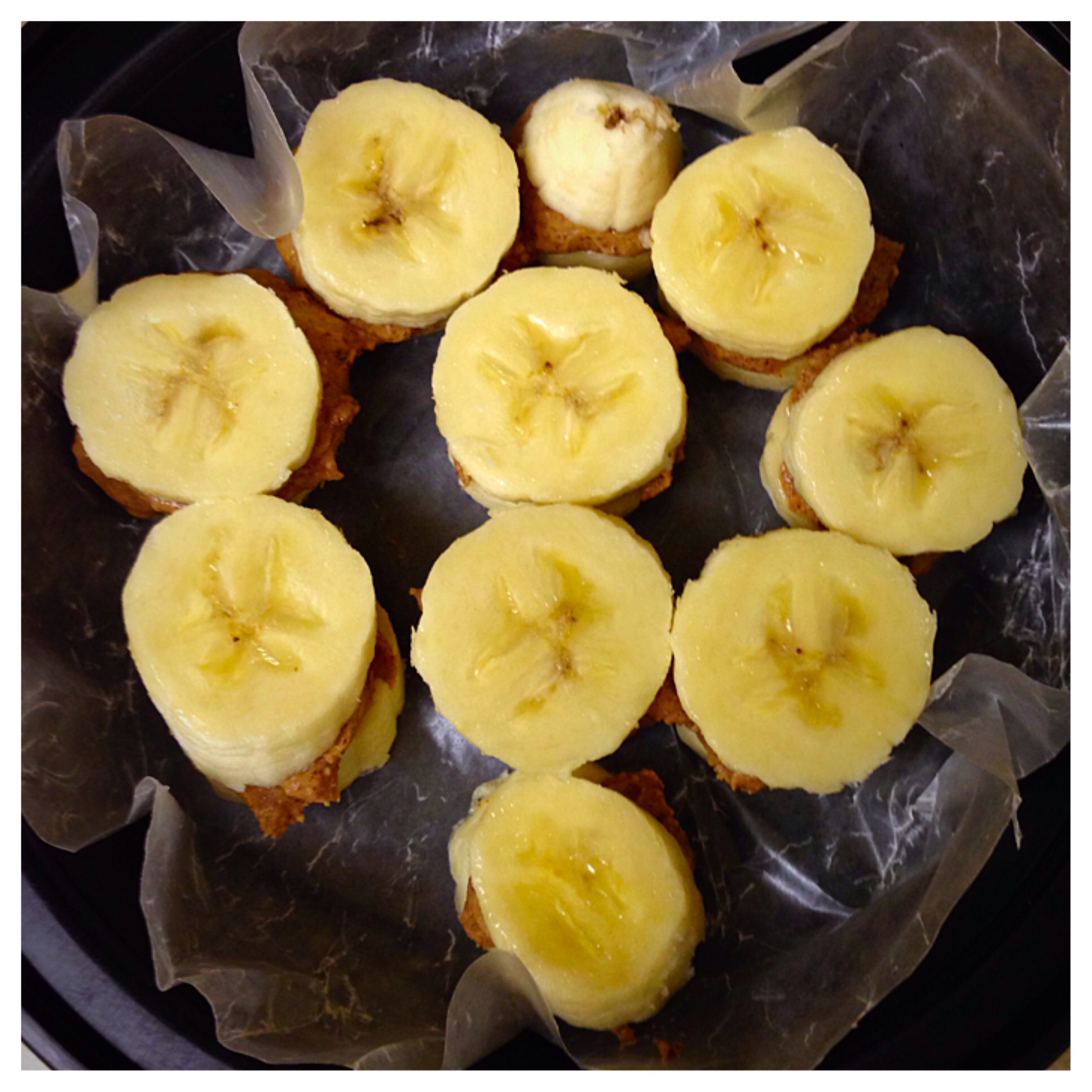 - Put some of your nut butter on one slice and top it with another creating a banana sandwich.