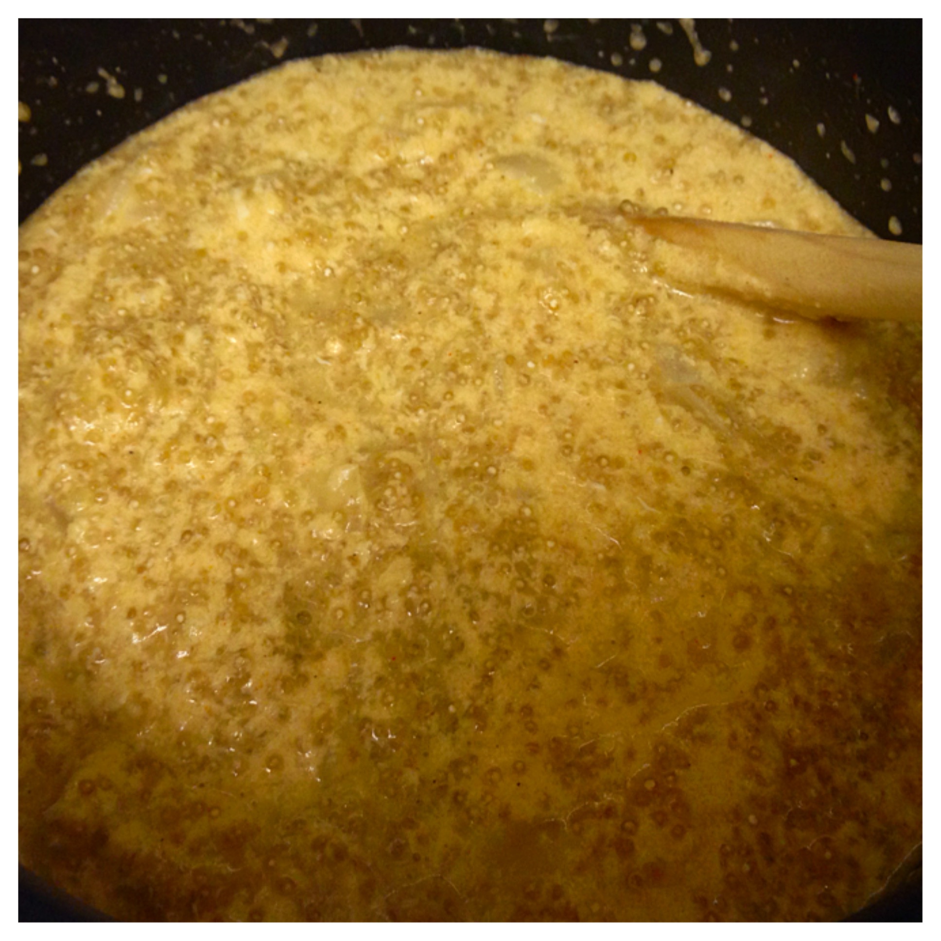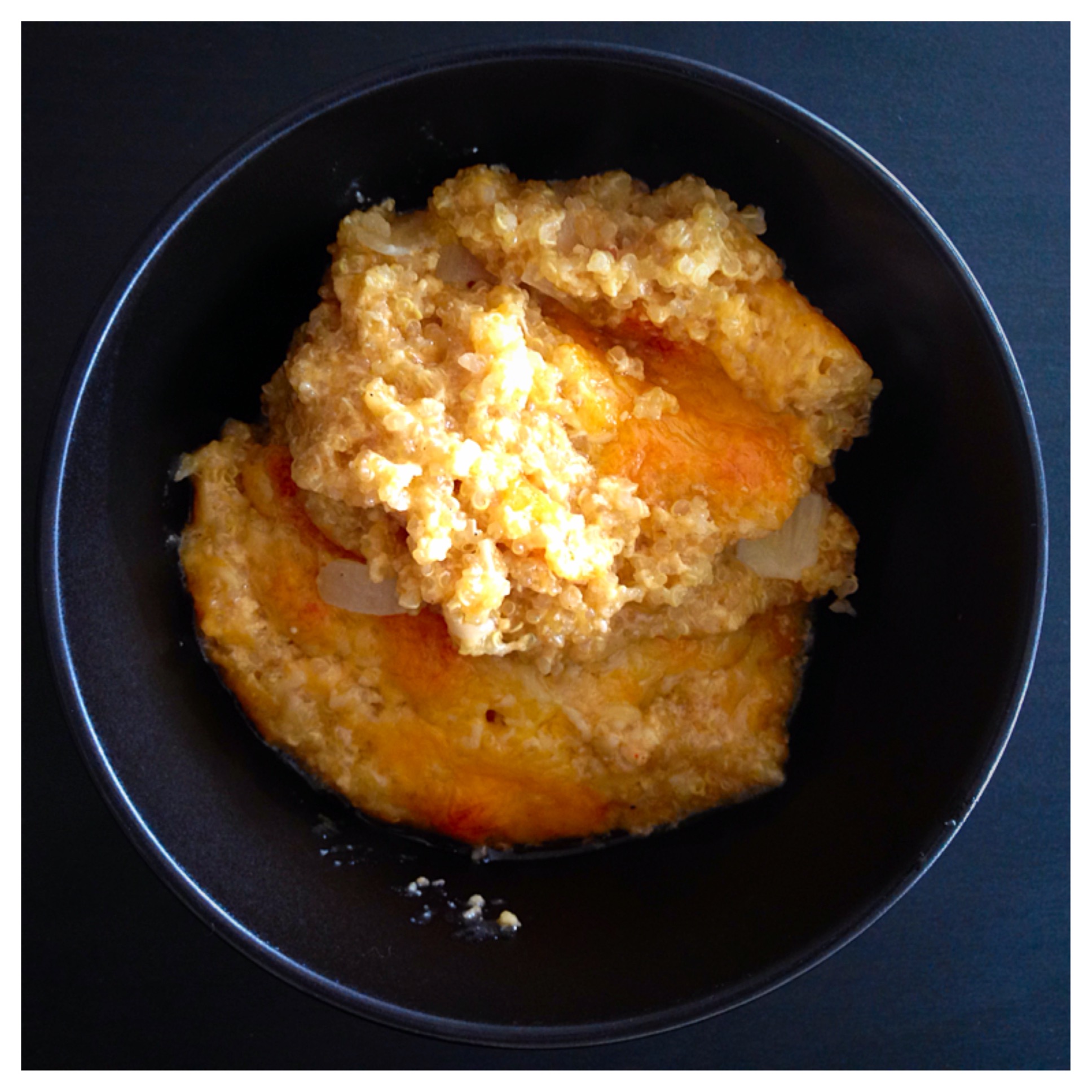 - Fold the quinoa into the mix and pour into a 2-quart casserole dish.