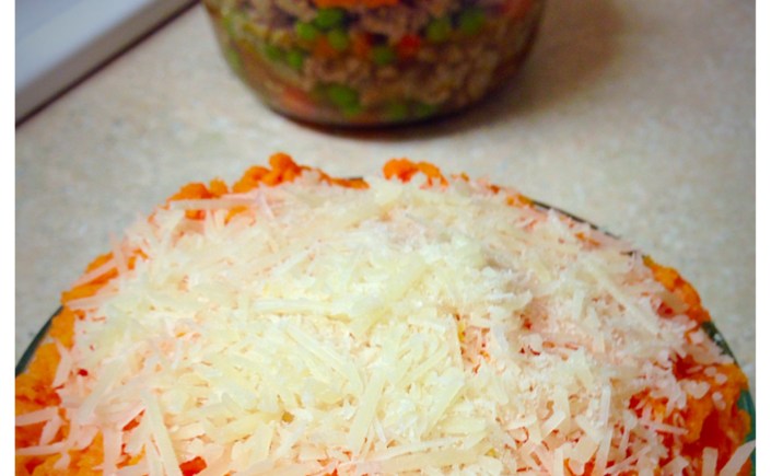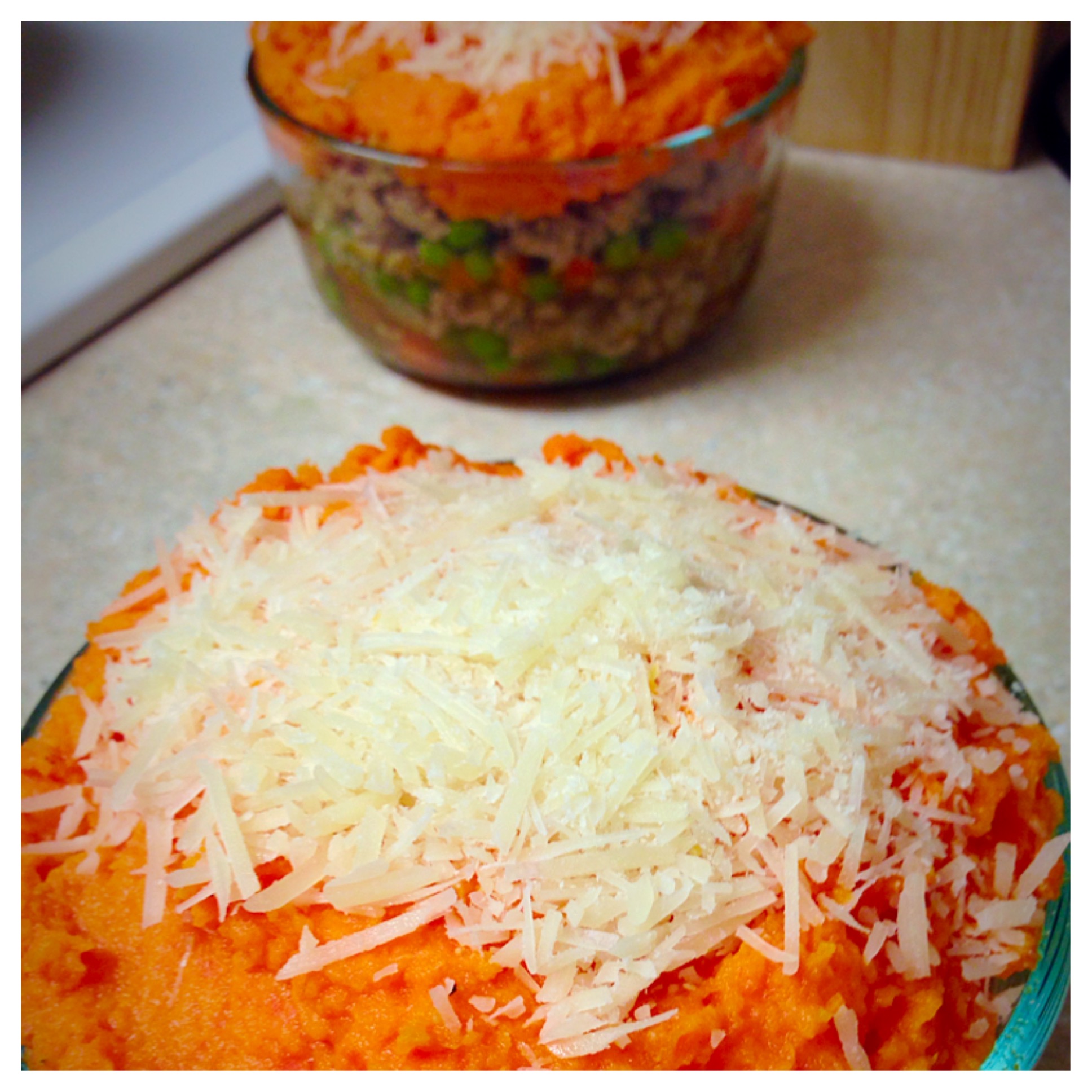 Recently I have an obsession with carrot purée and thought that it would be the perfect substitute for the mashed potatoes in shepards pie! Since carrots are on the sweeter side I thought that ground beef would not be the ideal combination but instead I would follow the healthy trend and go with ground turkey.