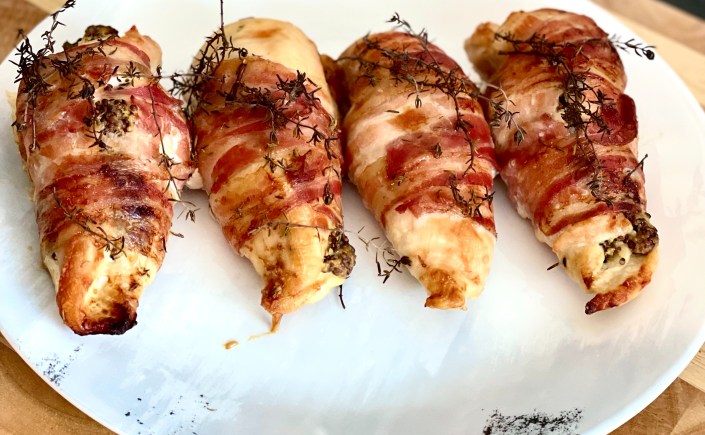 I would like to introduce you to a Rustic Soul Food recipe that I put together. My Bacon Wrapped Chicken Provençale is based on the flavors I tend to enjoy when I visit my family in the south of France. The beauty of this dish is that no additional oil or butter is needed as the bacon fat melts and keeps the whole dish moist and flavorful [bacon = life].
