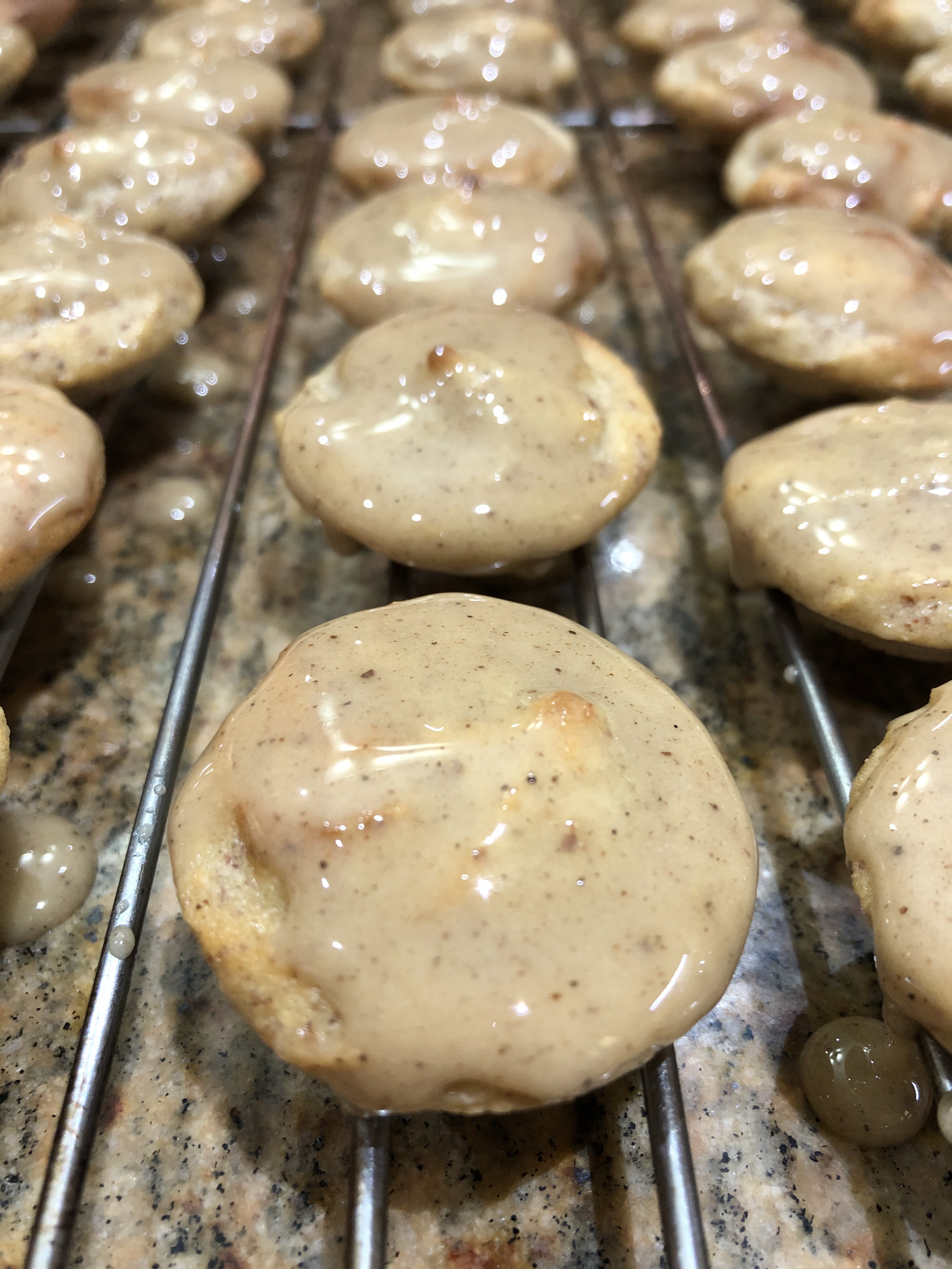 - While the glaze is still warm, dip each donut in and place on a cooling rack.