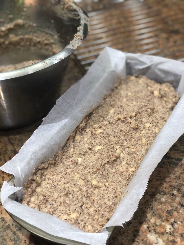 - Prepare your baking tin – I like to butter it and then put parchment paper