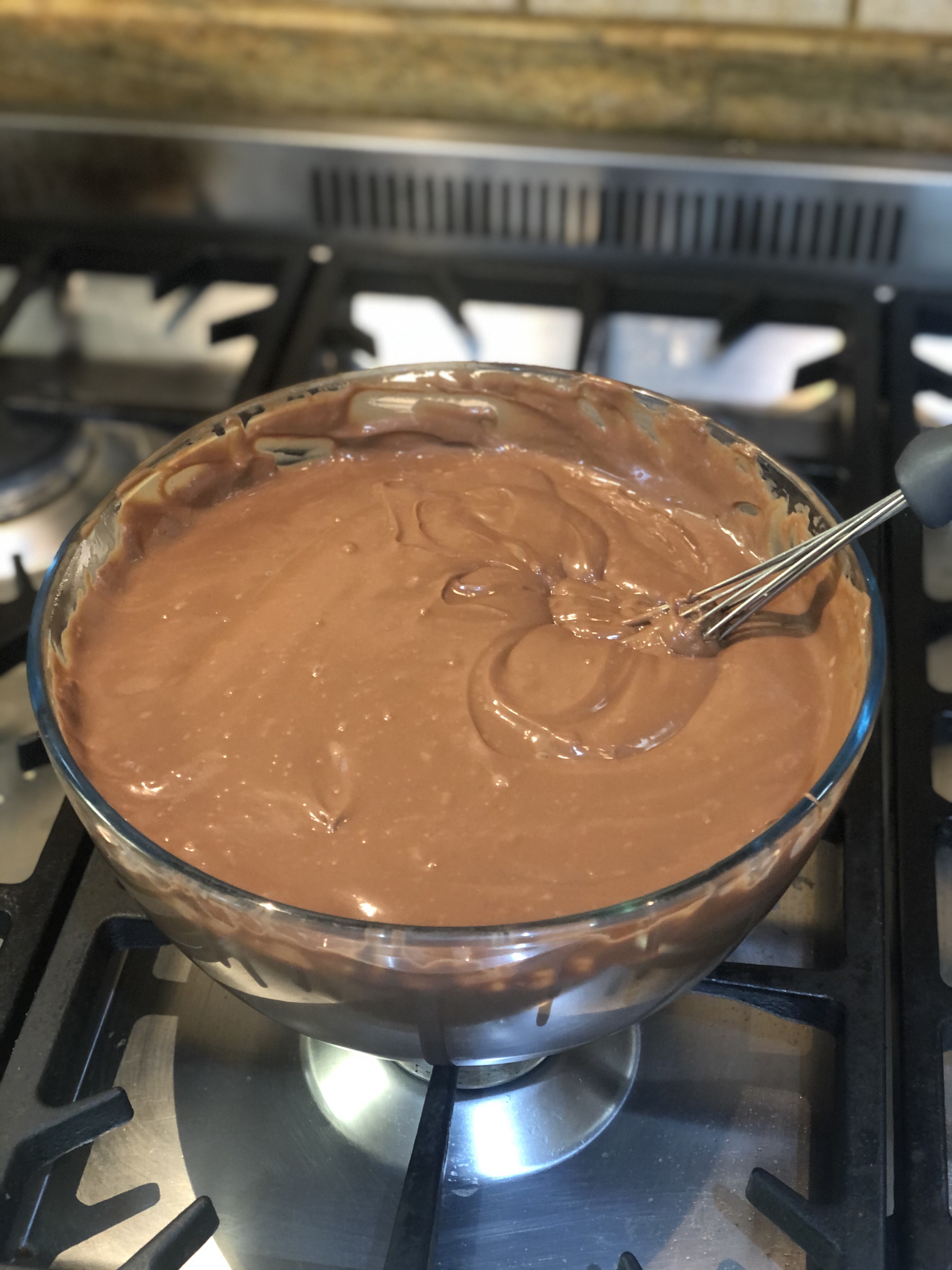 - Once you reach the desired consistency, add in the chocolate broken up into pieces. Mix until fully incorporated.