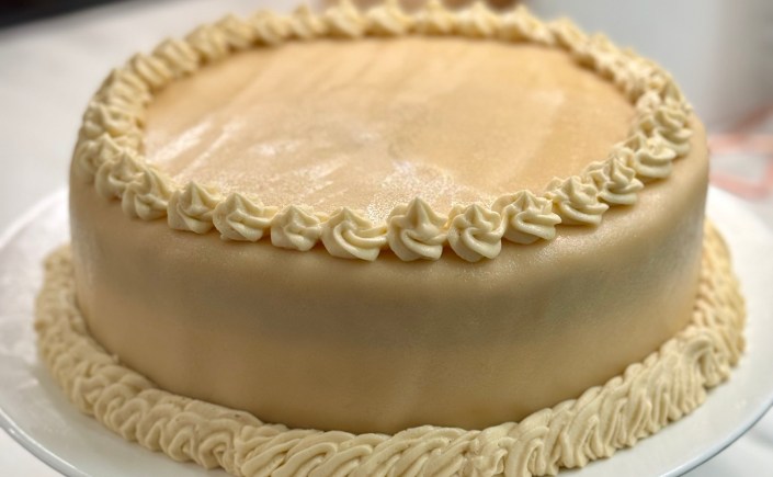 - Grease two 8″ cake rounds with butter & dusting flour; you can also line with parchment